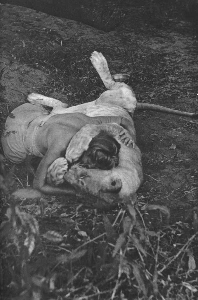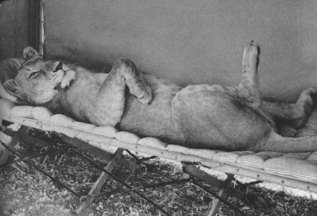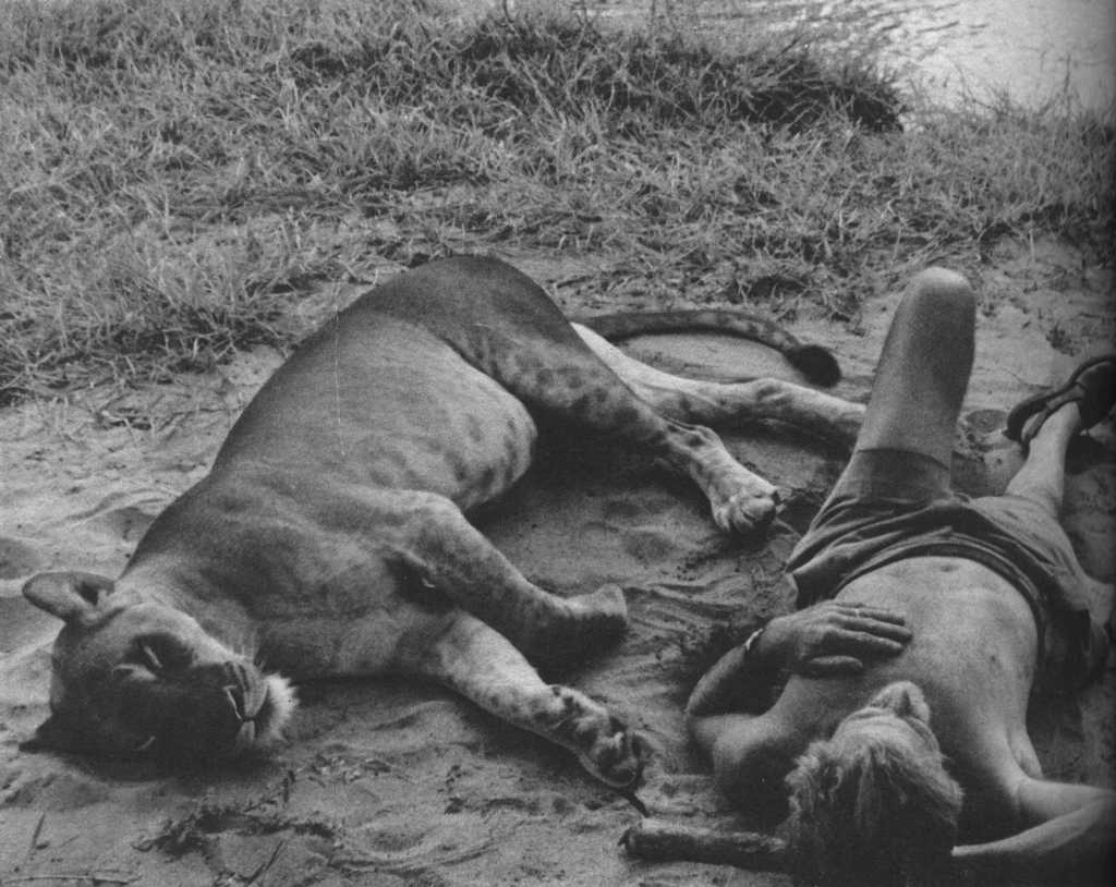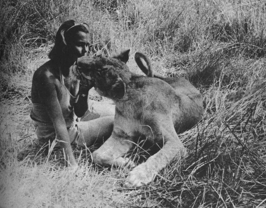 bornfree021.jpg Joy Adamson and the three female cubs (seven weeks old): The 'Big One', Lustica and Elsa